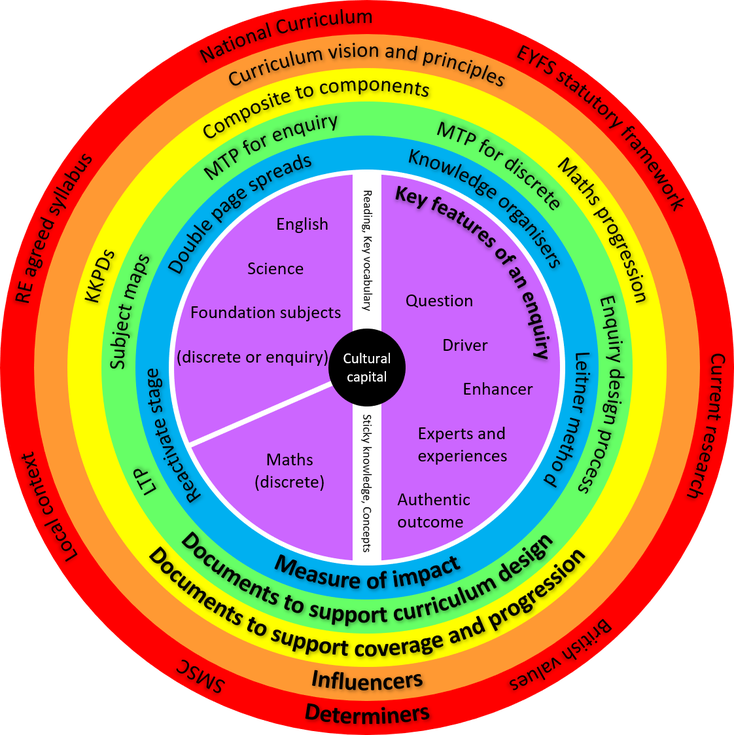 Fluency in the core subjects, with reading at the heart, enables access to the full curriculum and is therefore integral to our approach. The curriculum is carefully designed through enquiry drivers (for example: History, Geography and Arts), enhancers and discrete subjects, ensuring coverage, progression and retention of knowledge and skills. Our knowledge-rich curriculum is underpinned by key concepts. Children explore concepts throughout the curriculum, revisiting them in a wide range of contexts and through the lens of different subjects. This promotes a deep understanding of the concepts and enables the transfer of knowledge to the long-term memory. It aims to provide inclusive and aspirational environments where learners thrive and build the cultural-capital they need to make aspirational choices about their own future, overcoming any barriers. In order to achieve this our curriculum is underpinned by the following principles: