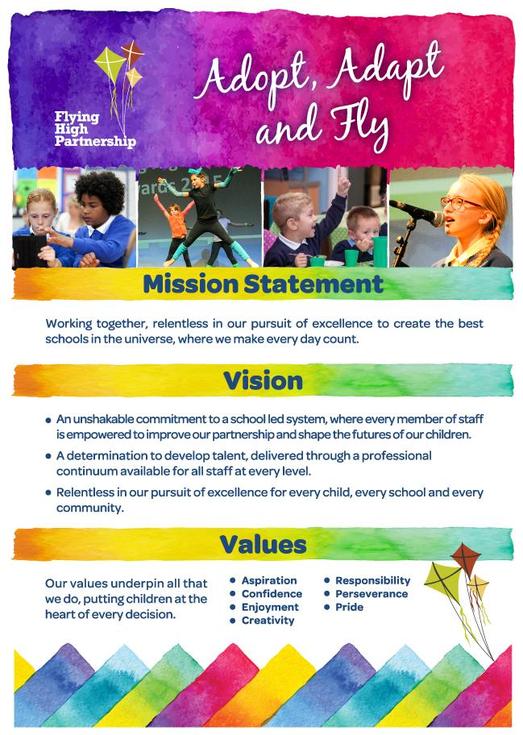The Flying High Trust is a partnership of schools across Nottinghamshire, Nottingham City and Derbyshire. Schools work together to ensure we are relentless in ensuring our children receive the best possible opportunities and experiences. This is achieved through a true collaboration where all decisions centre on children and schools are empowered to adopt best practice, adapt it within the context of each school and fly!